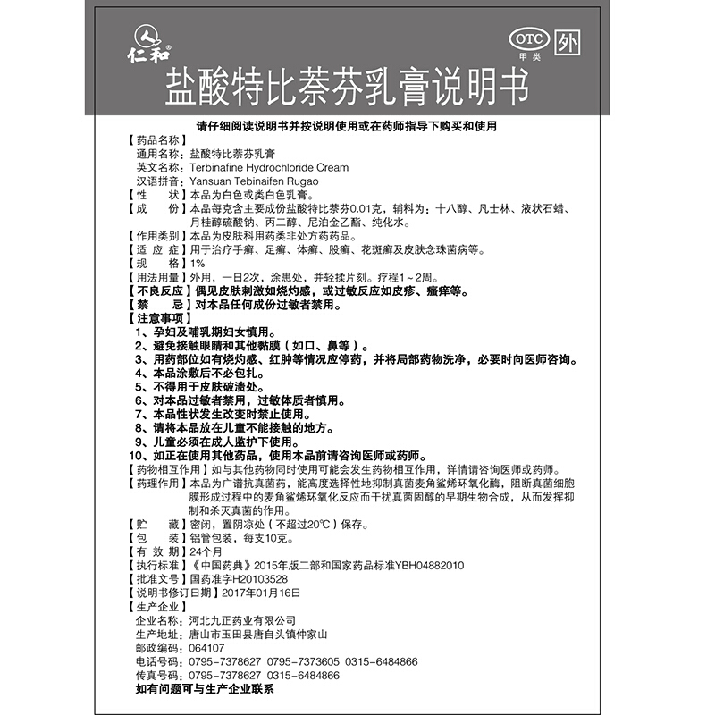 1.孕妇及哺乳期妇女慎用。2.避免接触眼睛和其他黏膜(如口、鼻等)。3.用药部位如有烧灼感、红肿等情况应停药,并将局部药物洗净,必要时向医师咨询。4.盐酸特比萘芬乳膏涂敷后不必包扎。5.不得用于皮肤破溃处。6.对本品过敏者禁用,过敏体质者慎用。7.本品性状发生改变时禁止使用。8.请将本品放在儿童不能接触的地方。9.儿童必须在成人监护下使用。10.如正在使用其他药品,使用盐酸特比萘芬乳膏前请咨询医师或药师。
