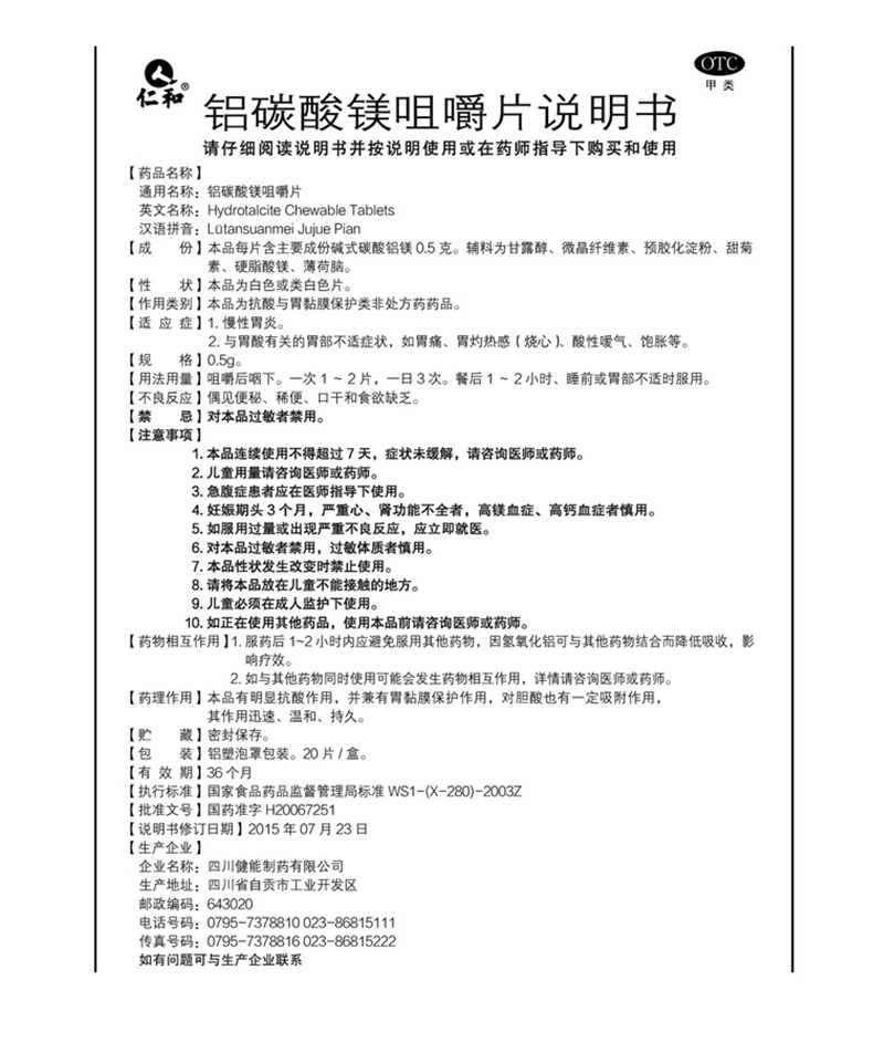 1.本品连续使用不得超过7天,症状未缓解或消失请咨询医师或药师。 2.对本品过敏者禁用。3.儿童用量请咨询医师或药师。4.妊娠期头三个月,严重心、肾功能不全者,高镁血症、高钙血症者慎用。5.如服用铝碳酸镁咀嚼片过量或出现严重不良反应,请立即就医。6.当药品性状发生改变时禁止使用。7.儿童必须在成人监护下使用。8.请将此药品放在儿童不能接触的地方。