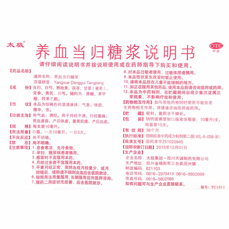 太极 养血当归糖浆